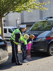 Was die Polizei sagt, hat für die Kinder Gewicht. Auch darum sind wir dankbar, dass sich die Zwettler Polizistinnen und Polizisten alljährlich Zeit nehmen, um mit den Kindern der ersten und zweiten Schulstufen über das sichere Bewegen im Verkehr zu sprechen, Verkehrsregeln und -zeichen zu erklären und die Wege rund um die Schule gemeinsam zu begehen.