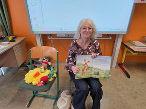 Unsere Sprachheilpädagogin Renate Doleschal besucht u. A. alljährlich die Kinder der ersten Klassen für einige Unterrichtsstunden mit dem Schwerpunkt Sprachheilpädagogik. Sie erzählte die Geschichte von Hase Primel, der kein "SCH" sprechen kann und verpackte auf spielerische Art und Weise einige Sprachheilübungen für die Kinder.