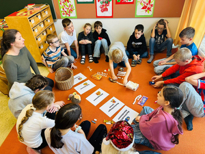 Interessant war auch eine Frucht die Sabine Schierhuber zur Verkostung mitnahm und den Kindern vorstellte: die Quitte. Diese wurden von der Familie Dürr an die Schule gespendet. Vielen Dank dafür.