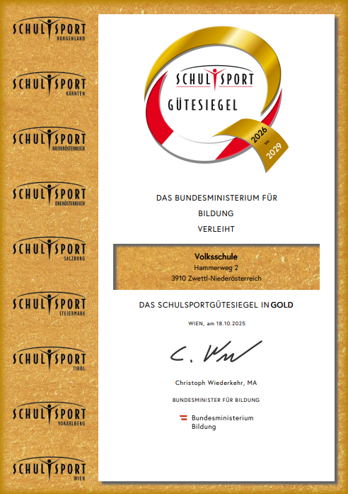Im Oktober wurde unsere Schule erneut mit dem Schulsport Gütesiegel in Gold ausgezeichnet.