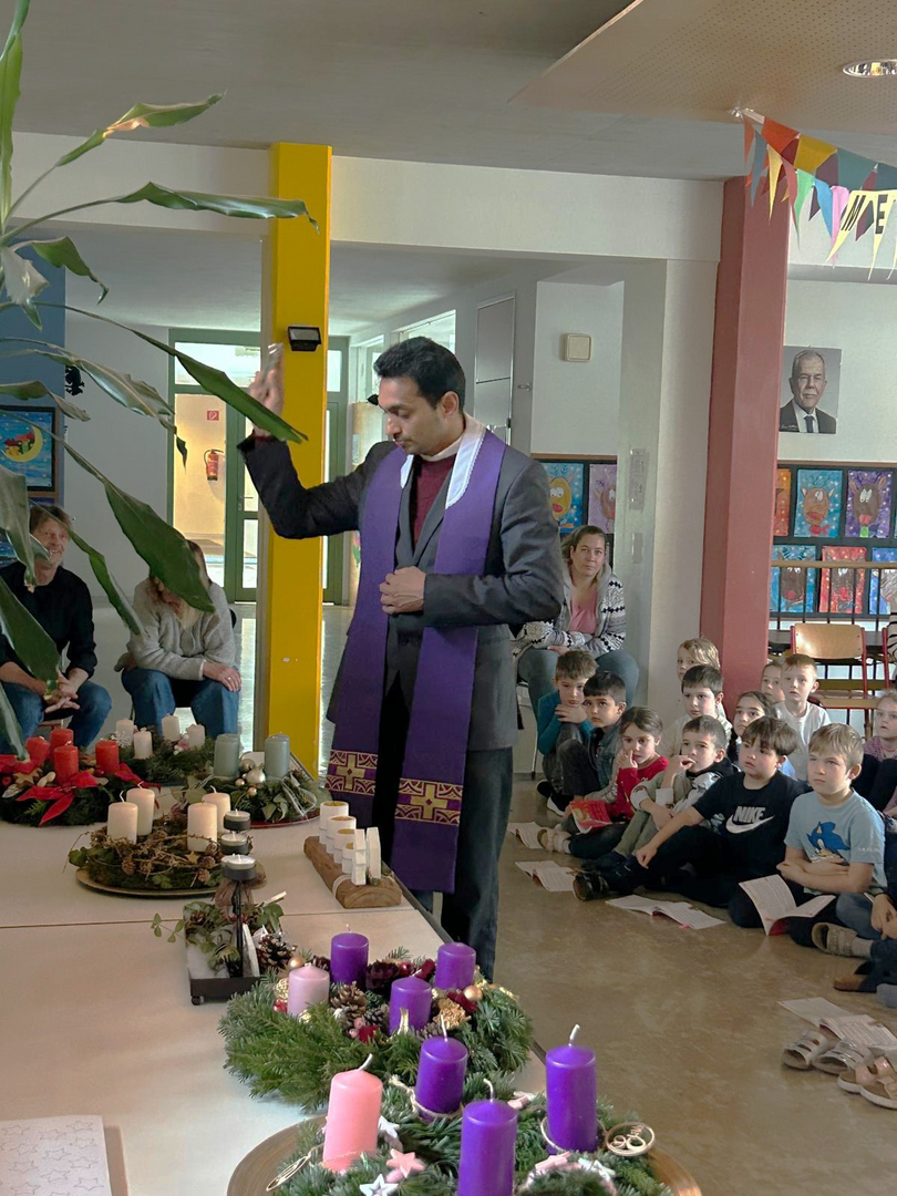 Bei einer gemeinsamen Feier in der Aula segnete der Zwettler Kaplan Shiju Cyriac unsere Adventkränze. Vielen Dank an die Eltern, die die Kränze für alle Klassen gestaltet und gespendet haben.