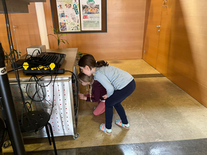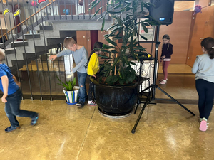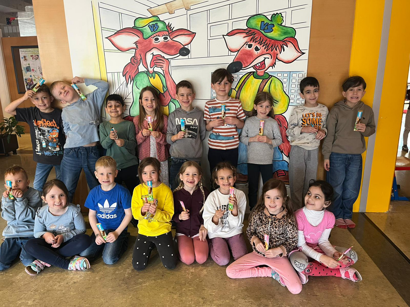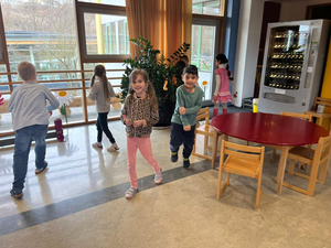 In Vorbereitung auf die Ostereiersuche am Ostersonntag, und um sicher zu gehen, dass nichts unentdeckt bleibt, suchten die Kinder der 1b die Aula unserer Schule gründlich ab. Tatsächlich konnten sie einige Süßigkeiten aus verschiedenen Winkeln bergen.
