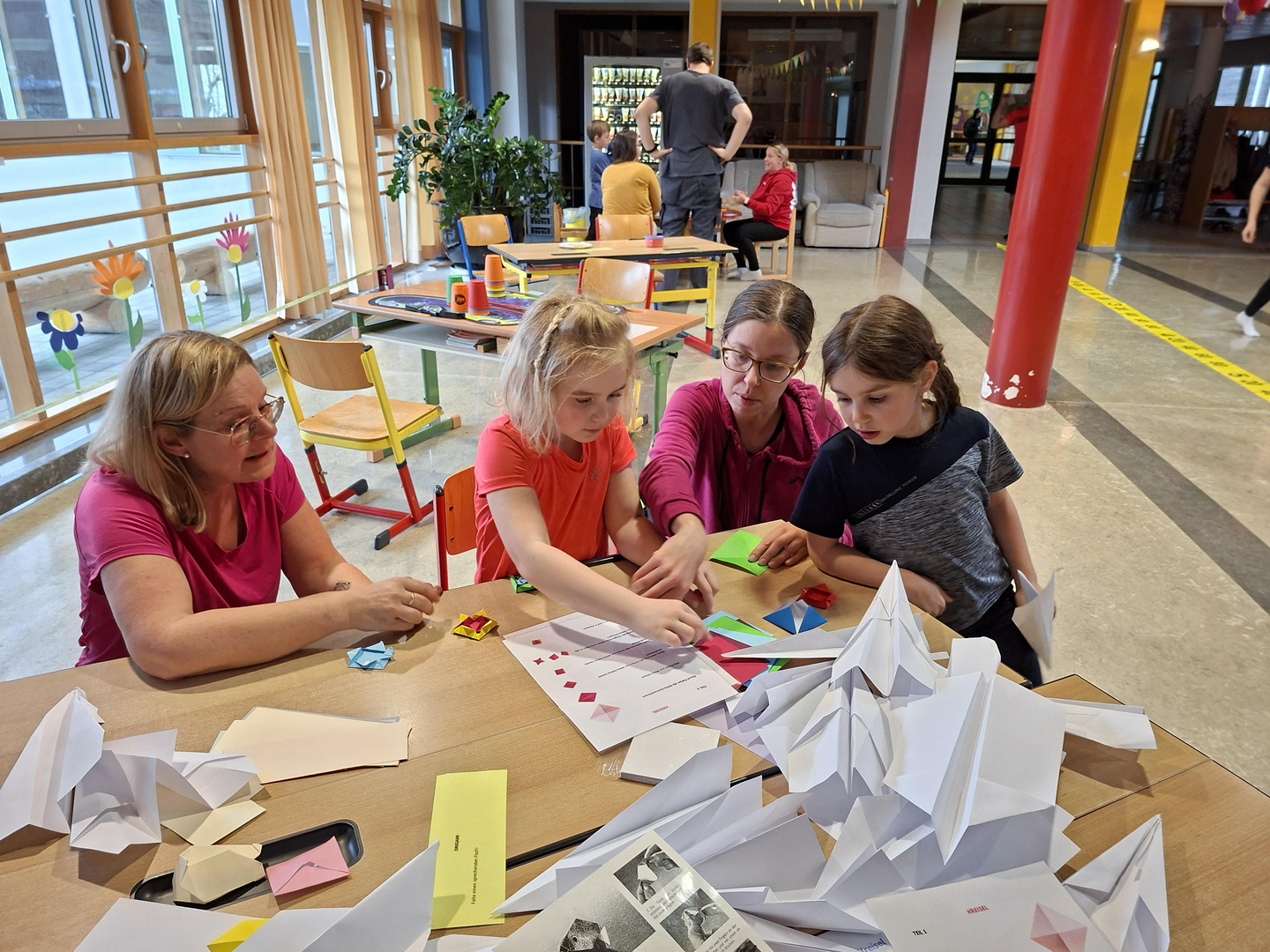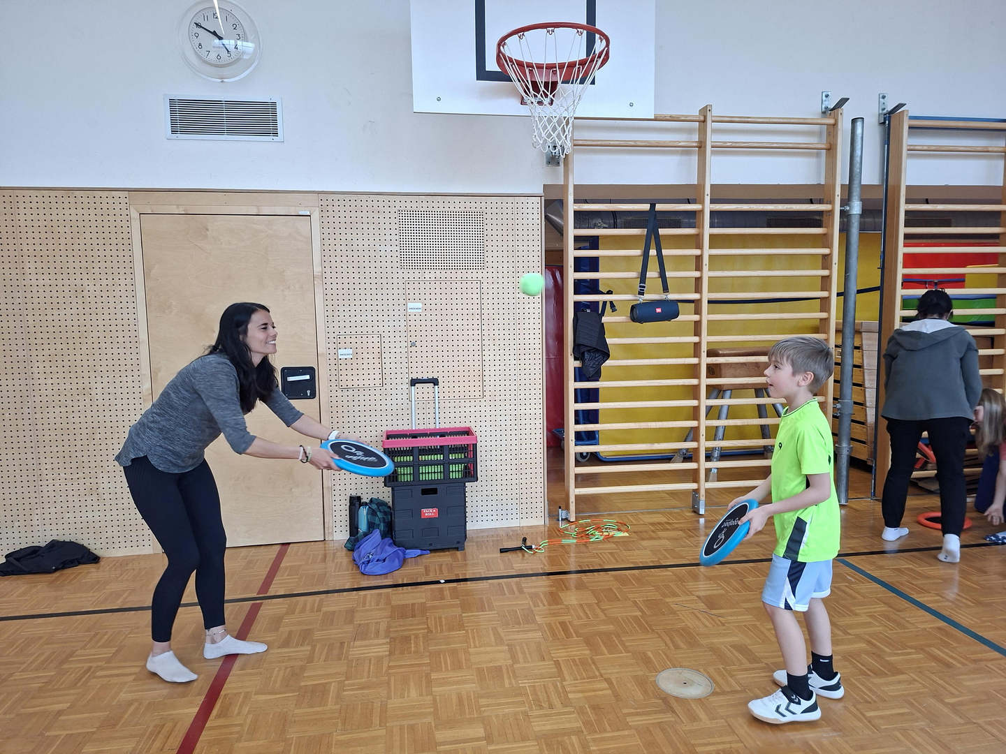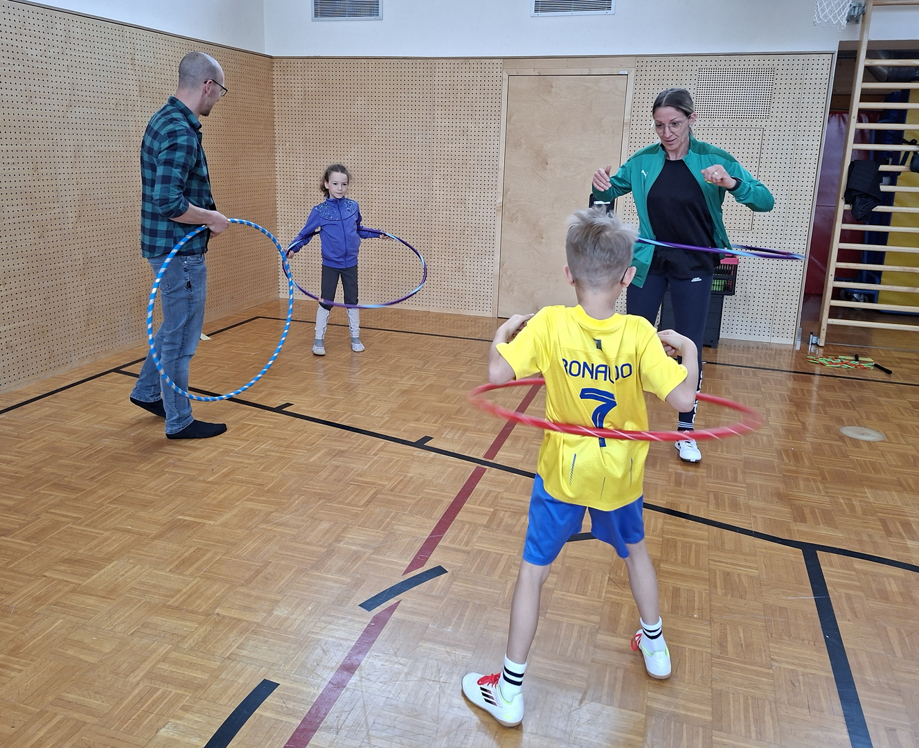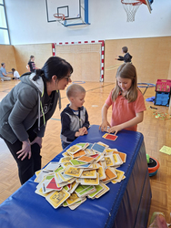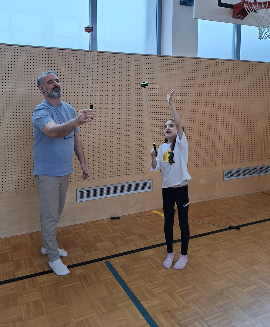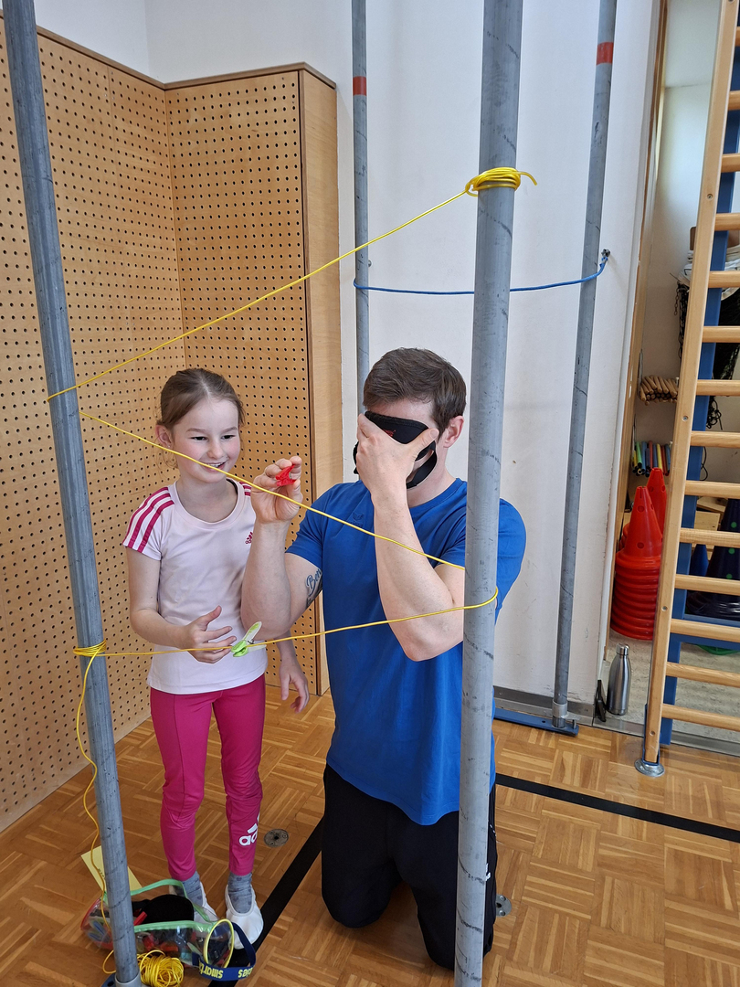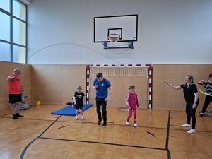 Die zweiten Klassen nehmen am Tut-gut Projekt "Bewegte Klasse" teil und erlebten im Zuge dessen einen vergnüglichen Eltern-Kind-Nachmittag im April. Trainerin Tina Kretschmer überlegte sich zahlreiche Bewegungs- und Geschicklichkeitsaufgaben, die die Kinder gemeinsam mit ihren Eltern zu meistern versuchten. Es wurde zusammen gefaltet, Becher gestapelt, Hula Hoop Reifen geschwungen, Seil gesprungen und vieles mehr.