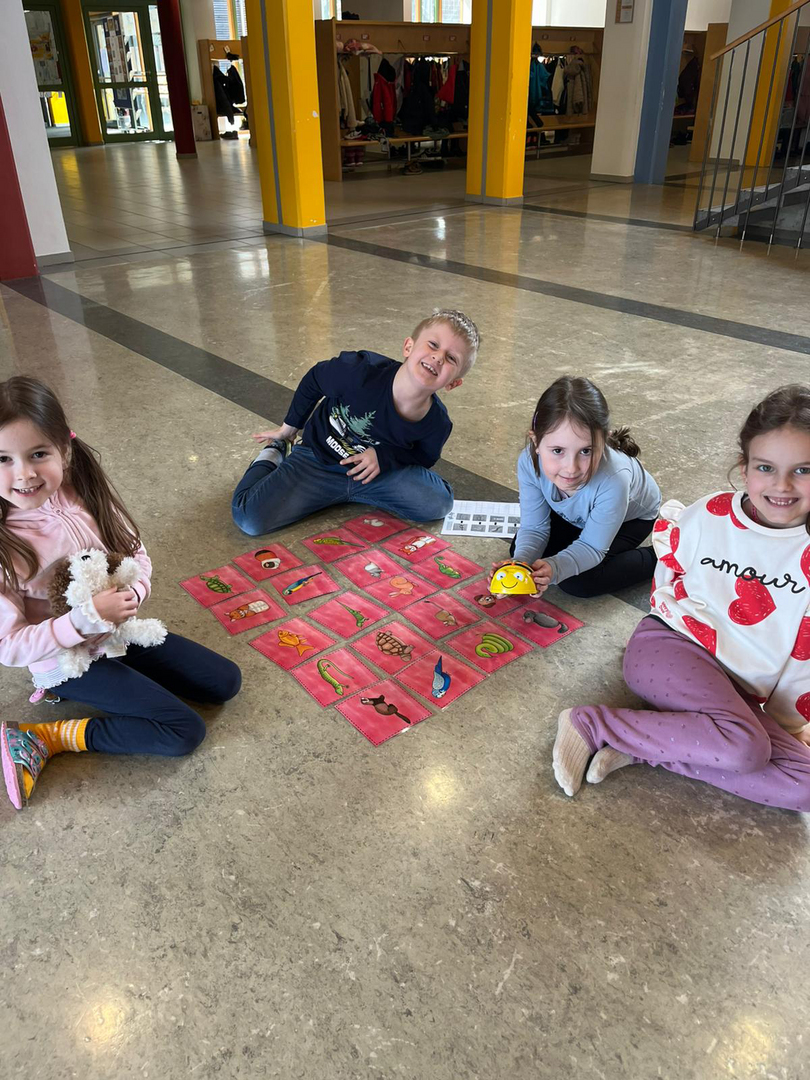 Einblicke in die Robotik erhalten die Kinder aller Klassen mit den Bee-Bots. Diese kleinen Roboterbienen werden von den Kindern mithilfe der Tasten am Rücken programmiert. Nach einer Einführung durch Amila Hodzic probierten die Schülerinnen und Schüler das Codieren der Bee-Bots aus und hatten eine Menge Spaß dabei.