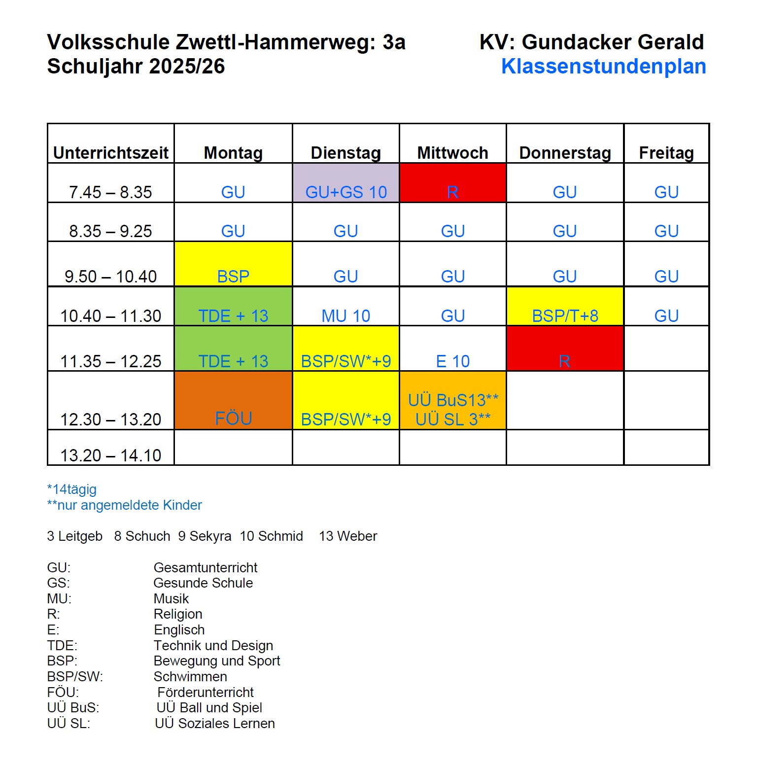 Stundenplan der 3a