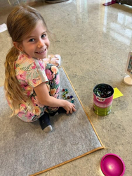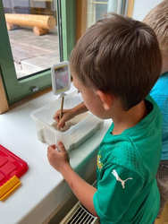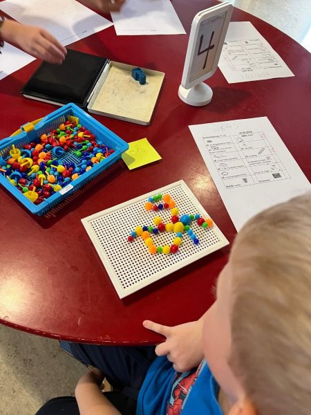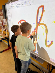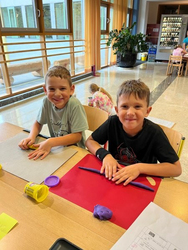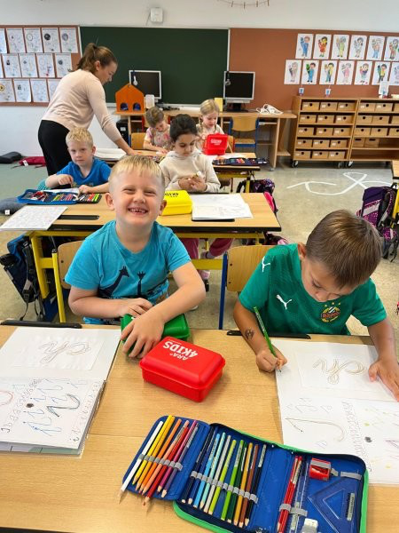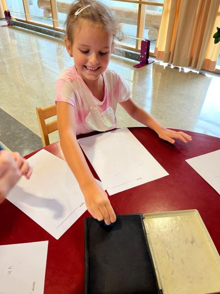 Die Kinder der 1b lernten die Buchstaben "I" und "Ch" kennen. Beim Stempeln, Kneten, Legen und Schreiben nahmen sie den Buchstaben mit verschiedenen Sinnen wahr.